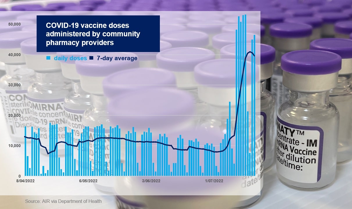 With over 8 million community pharmacy-administered doses delivered to date, pharmacists are now providing up to 45% of daily COVID-19 vaccinations, compared to approximately 15–20% in October last year.