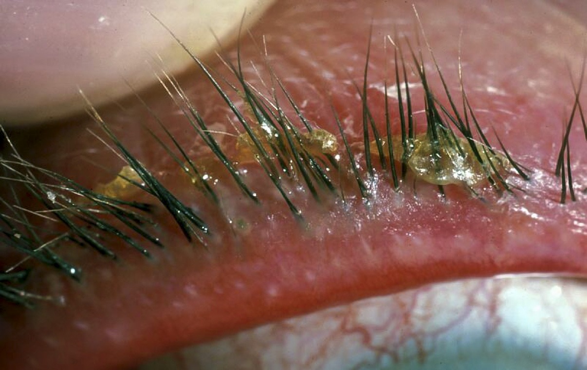 time. On further questioning, Parag mentions that there are often crusty flakes at the base of his eyelashes when he wakes in the morning. On inspection, it appears his eyelids are mildly inflamed. Further inspection of the affected areas and careful questioning of Parag’s history rules out any symptoms that may require referral. Parag reports that he occasionally wears reading glasses. He is in good health with no other medical conditions.
