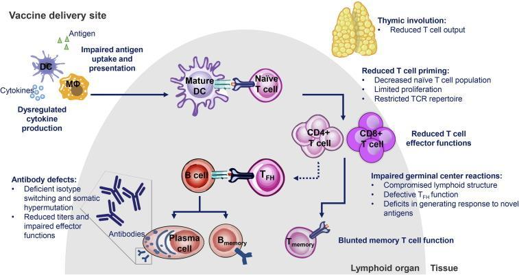 Immunosenescence is also understood to be linked to comorbidities that are associated with increased influenza disease burden, such as diabetes mellitus, cancer, and other autoimmune and neurological disorders.17