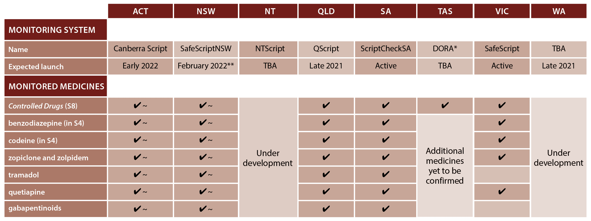 FIGURE 1 – Real-time prescription monitoring: summary of state and territory systems