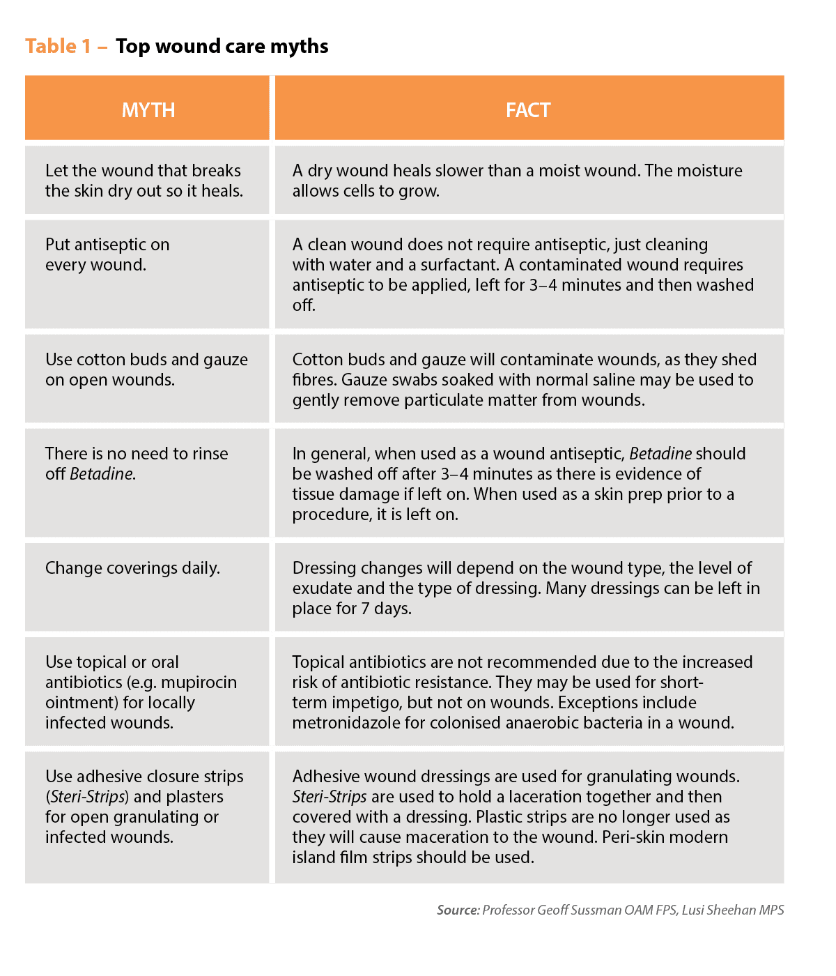 Community pharmacists have long been destinations for patients seeking treatment for minor injuries. While the management of acute wounds is within the scope of practice of all registered pharmacists in Australia,1 the role has become more specialised in recent years, with increasing numbers of pharmacists training in wound care and establishing wound care clinics. In Queensland, a pilot program even allows participating pharmacists to prescribe for acute wound management, among other conditions.2