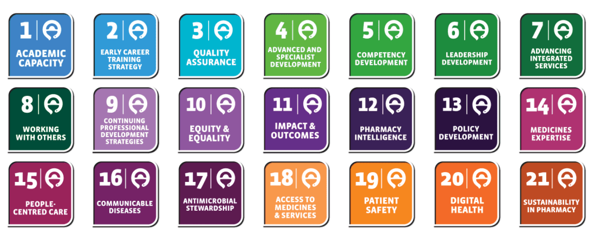 Each goal includes a set of mechanisms to help facilitate the aim. For example, FIP Development Goal 20: Digital Health, aims to create a digital transformation within the pharmacy workforce and to establish systems to deliver digital health