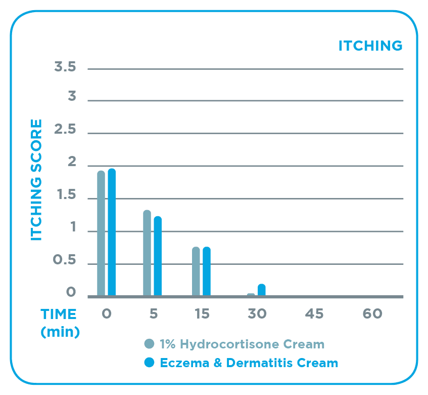 The Dermal Therapy Eczema & Dermatitis range is clinically tested against 1% hydrocortisone in relieving itching, redness and swelling.1