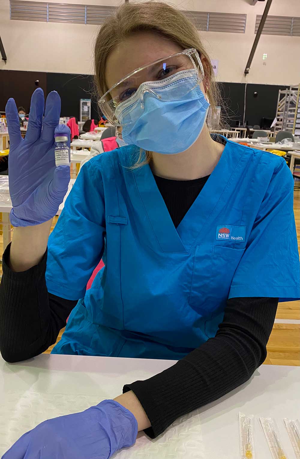 For final year pharmacy student Jodie Jackson, who works as a pharmacy assistant at the Royal Prince Alfred Hospital and in multiple vaccination centres across Sydney, life in lockdown has meant finding new ways to connect.