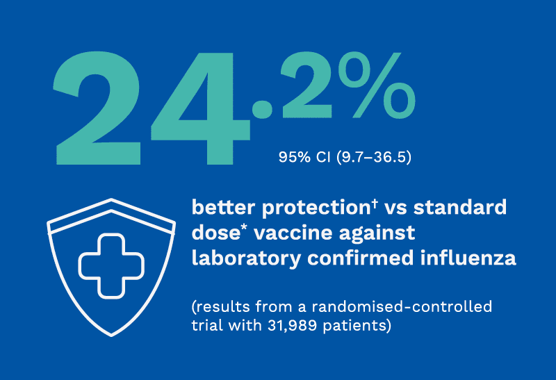 When a patient 60 years and over presents for their annual influenza vaccination, there is a high-dose option available that, with 60 μg of each strain, offers more protection against influenza and its complications than standard-dose unadjuvanted influenza vaccine, with only 15 μg of each strain.⁵⁻⁷