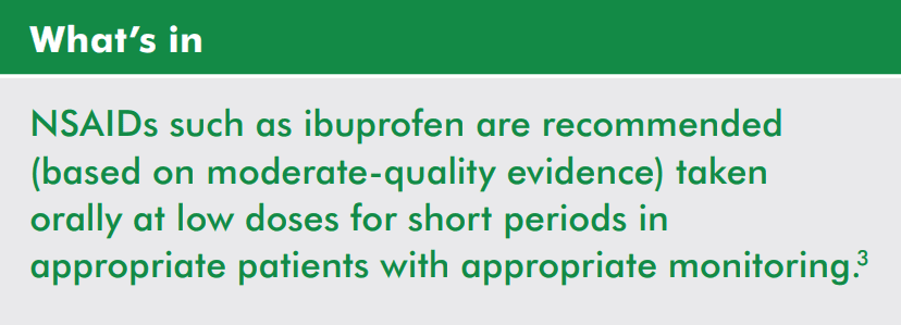 ‘The changes to the RACGP guidelines, as well as the recent changes to MR paracetamol scheduling, present pharmacists with an opportunity to reflect on the body of evidence for the use of NSAIDs and paracetamol for OA pain, as well as alternative acute and chronic pain management options,’ Ms McSwan said.
